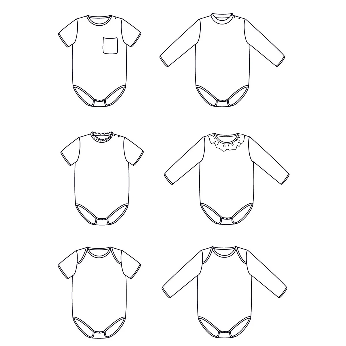 Duo de patron body pour bébé mixte et toutes saisons. Disponible de la taille 1 à 24 mois et du 3 mois au 4 ans, au format PDF et projetable. Niveau de couture : intermédiaire. Ce patron dispose d'un tutoriel vidéo.