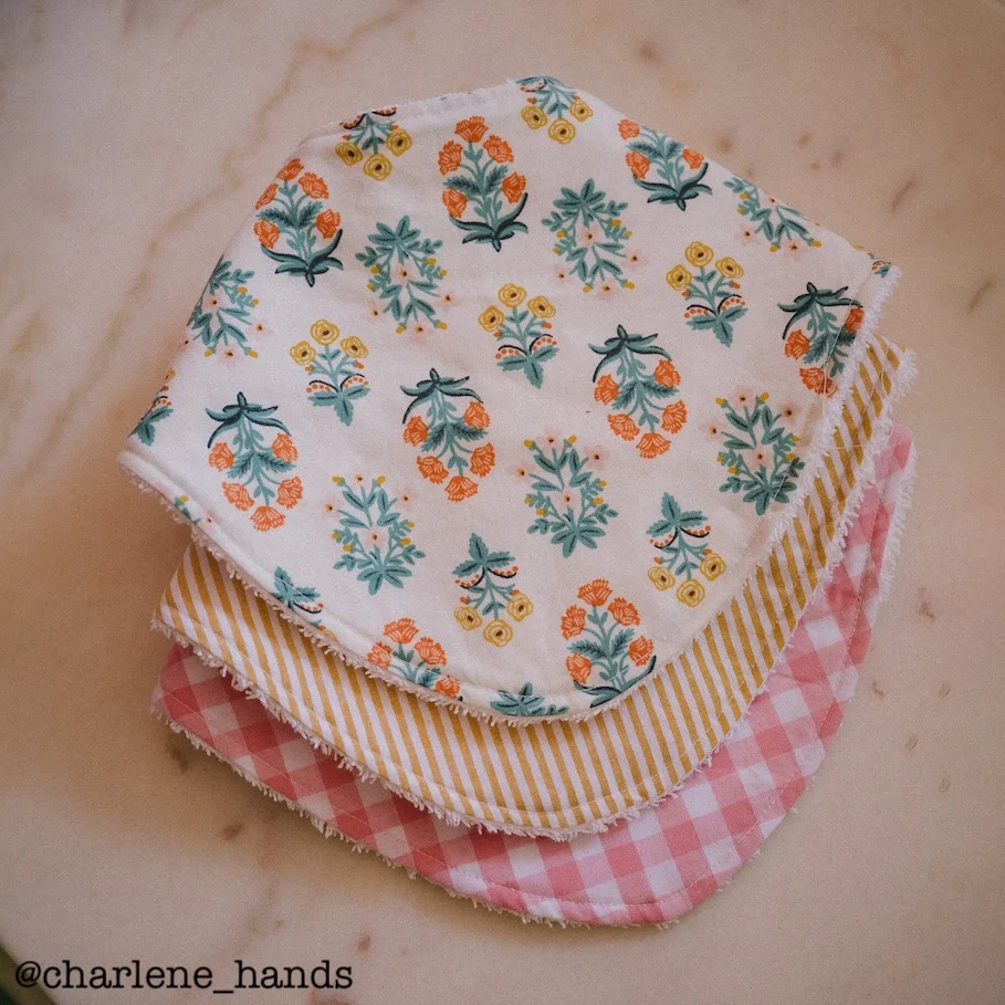 Patron de bavoir pour bébé, taille unique. Disponible au format PDF. Niveau de couture : facile. Ce patron ne dispose pas de tutoriel vidéo.