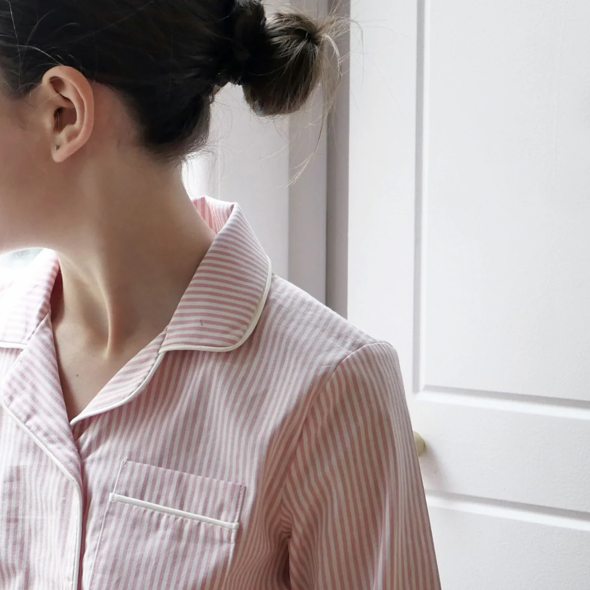 Tissu Popeline - Rayures - Rose dragée et blanc