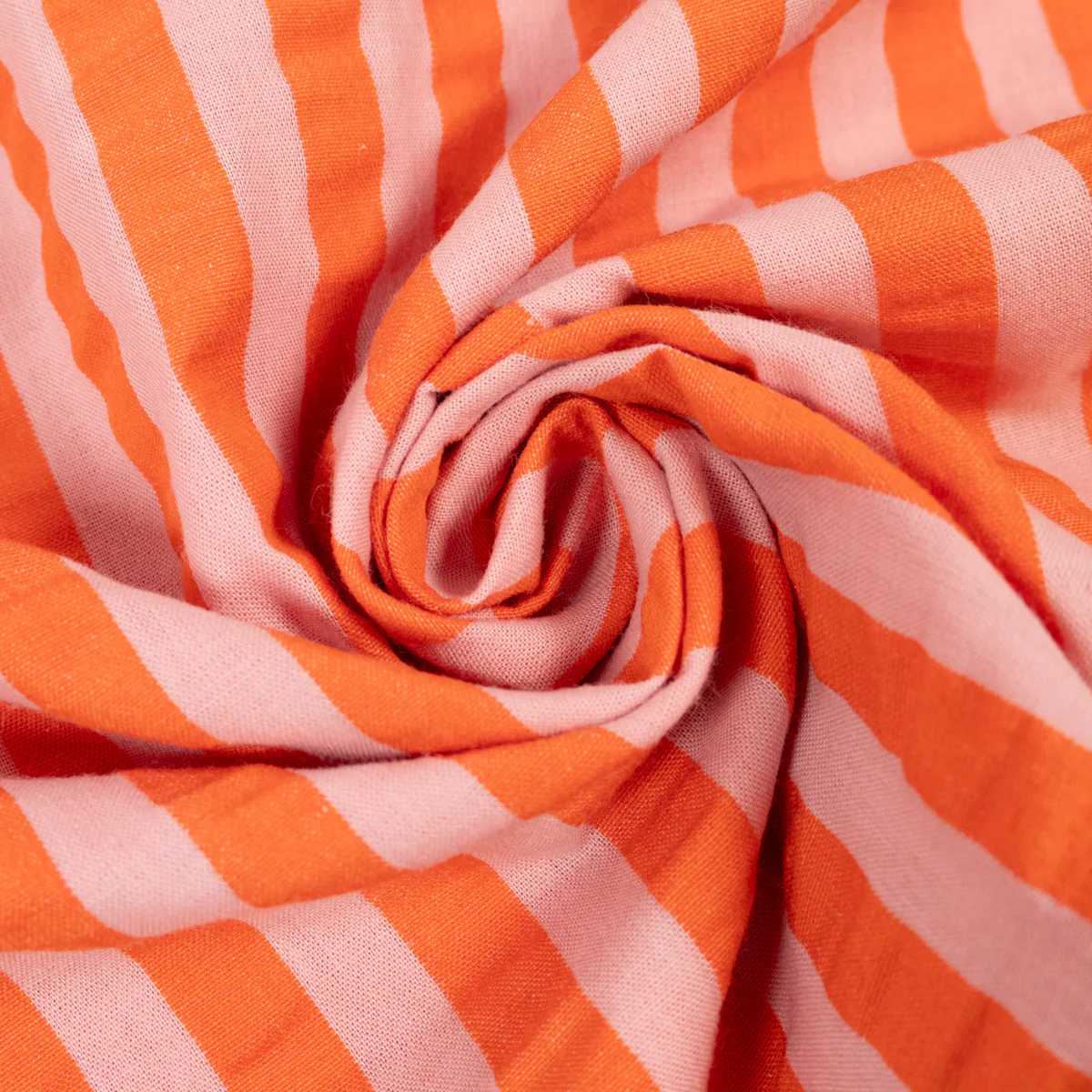 Tissu seersucker - Rayures - Rose et orange